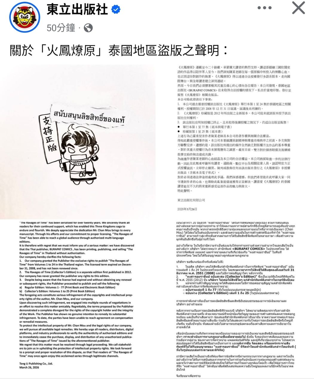 [情報] 東立:火鳳燎原泰國版是盜版