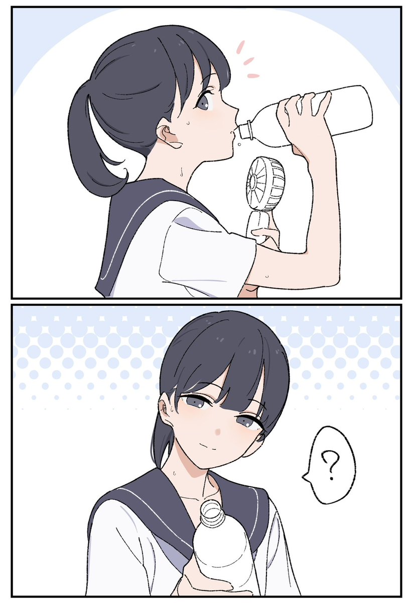 女同學笑笑的把她喝過的水瓶遞來
