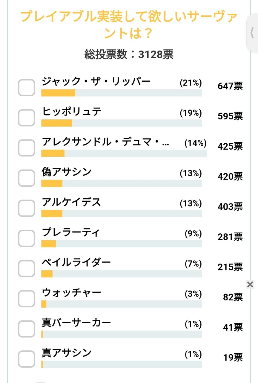 4.偽 Assassin 420票 13%