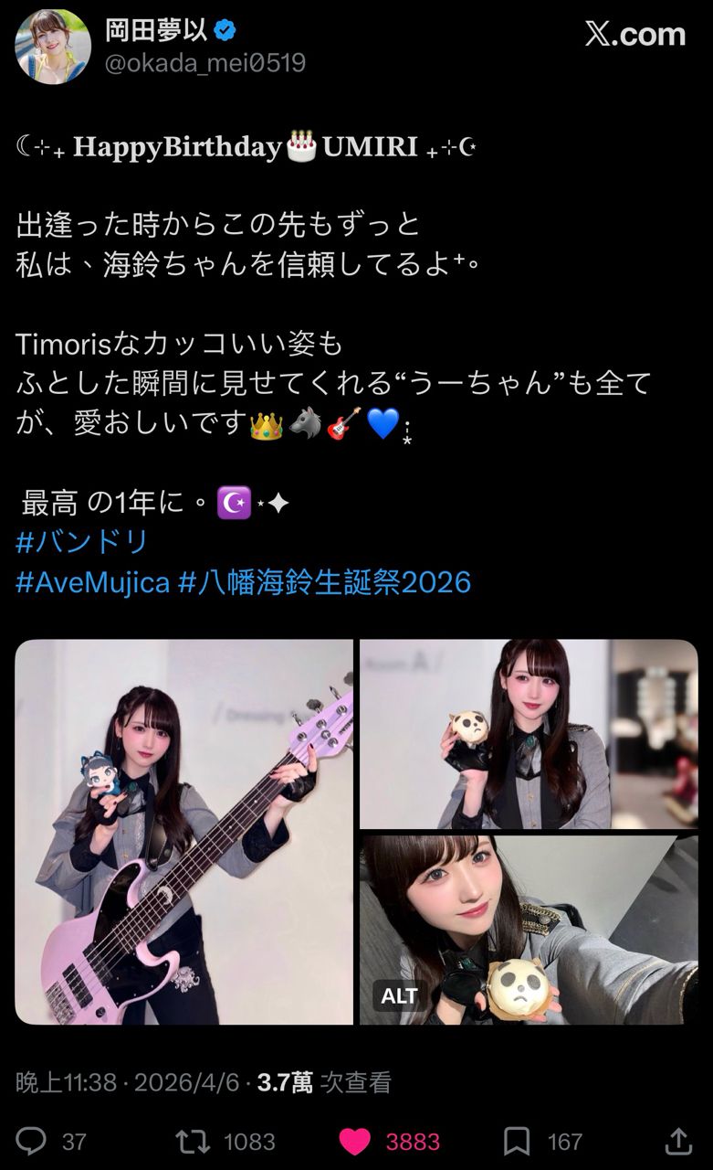 [邦邦] 八幡海鈴聲優岡田夢以 祝海鈴生日快樂