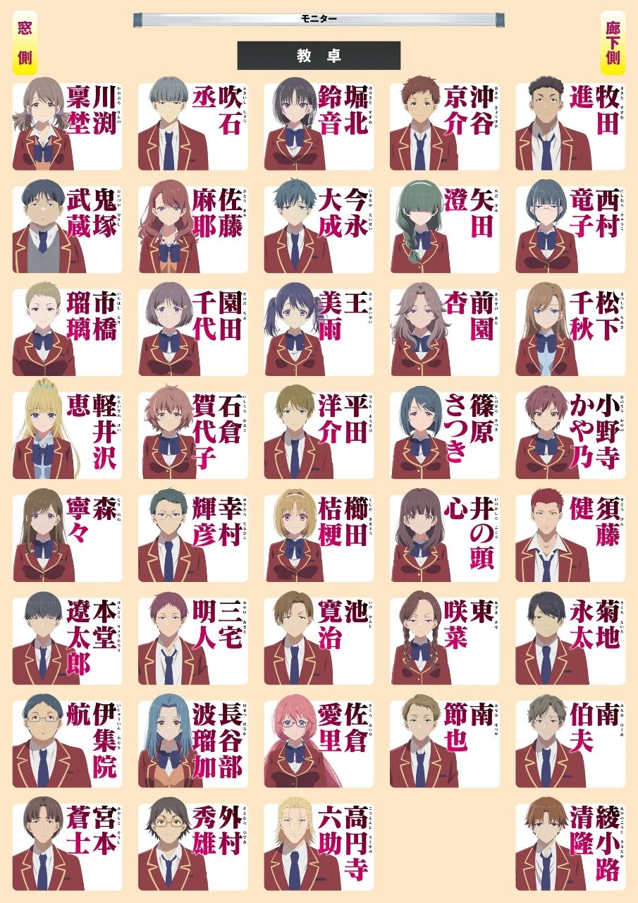 [閒聊] 實力至上主義教室 二年級 座位表