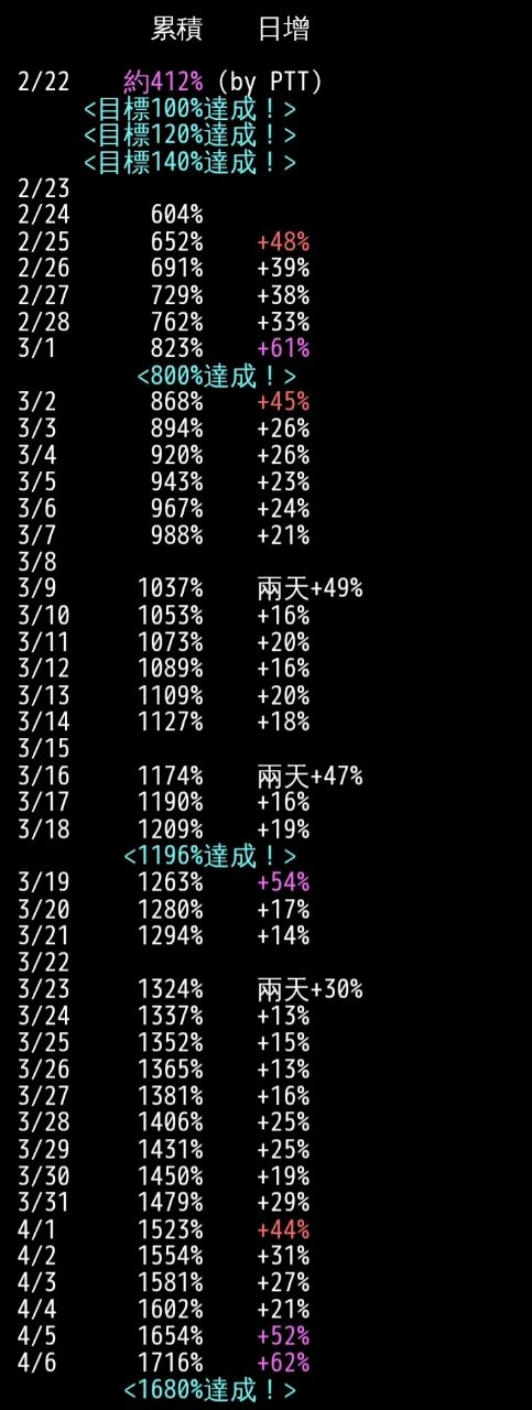 距離4/22截止還有超過兩週的時間下,真的突破了1680%。