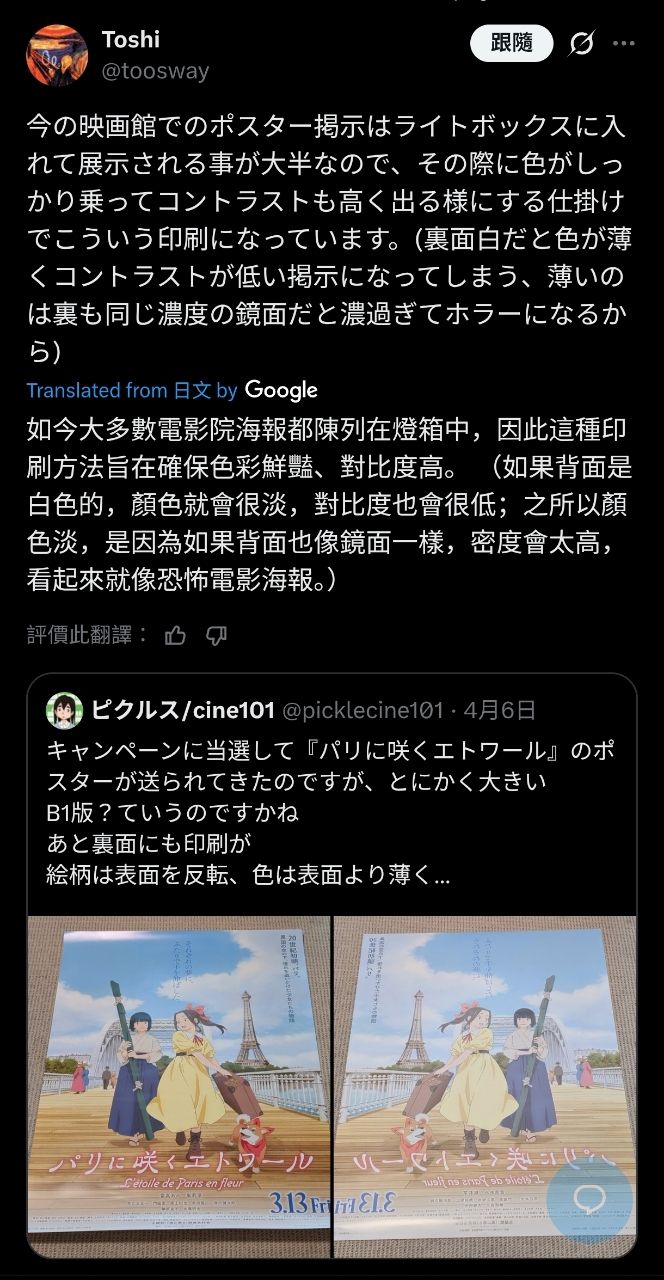 [討論] 動畫電影海報雙面印刷 原因是燈箱
