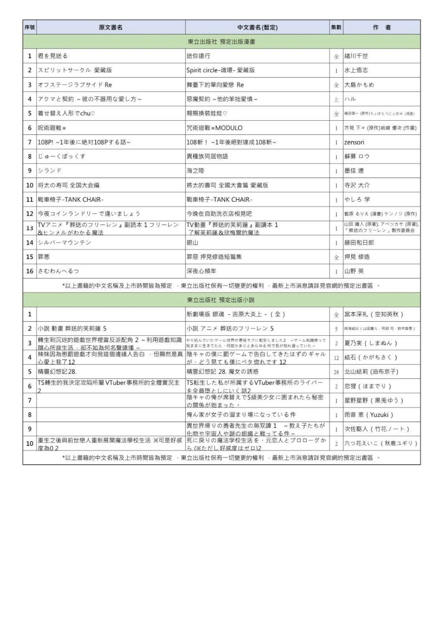 [情報] 東立本次新授權名單看點