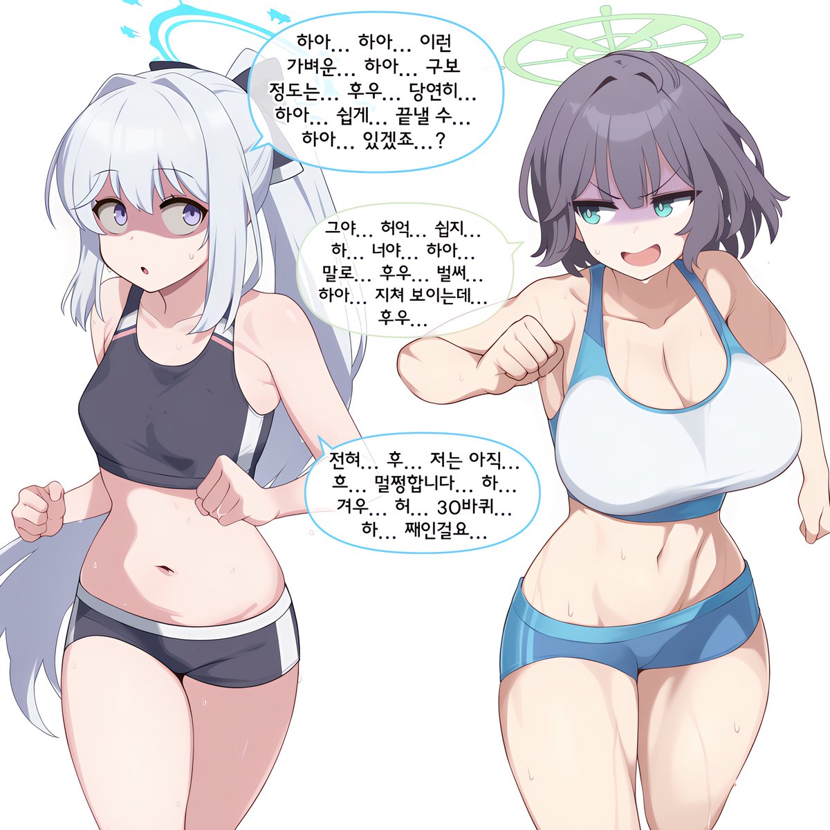 「一點也不……呼……我還……哼……完全沒事……哈……才……嗯……第30圈……哈……