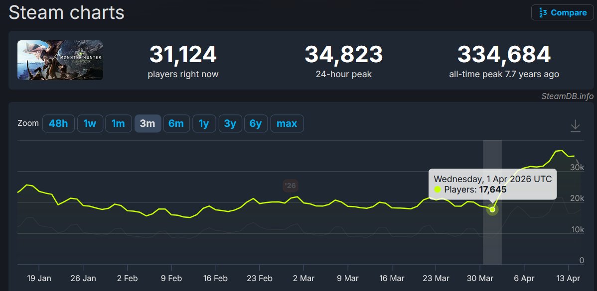 [閒聊] 魔物獵人世界因特價 玩家數從17k變35k