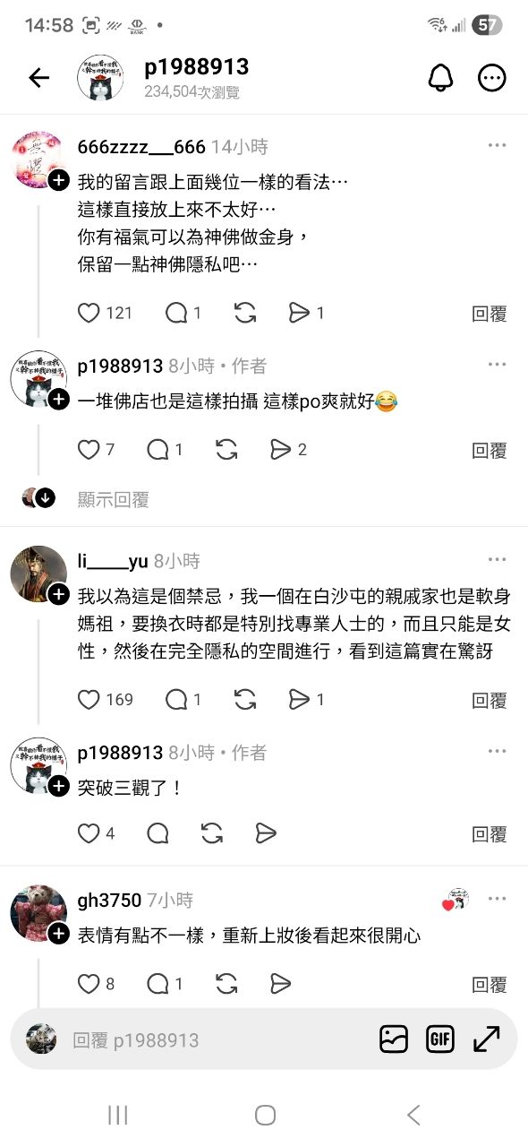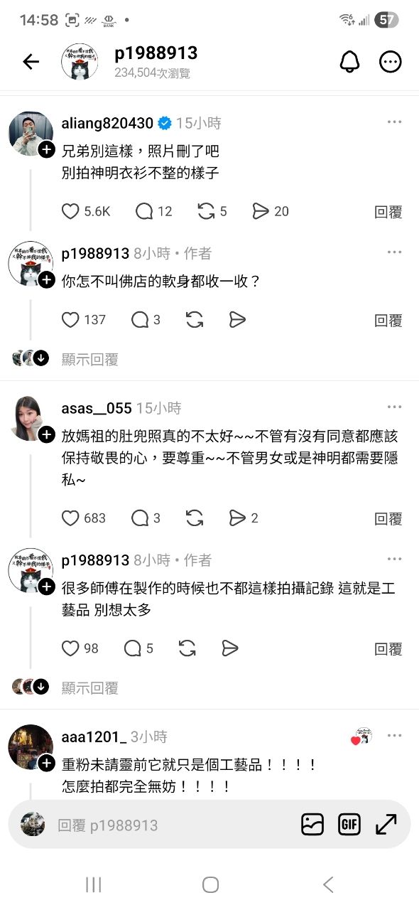 放媽祖的肚兜照真的不太好~~不管有沒有同意都應該保持敬畏的心,要尊重~~不管男女或