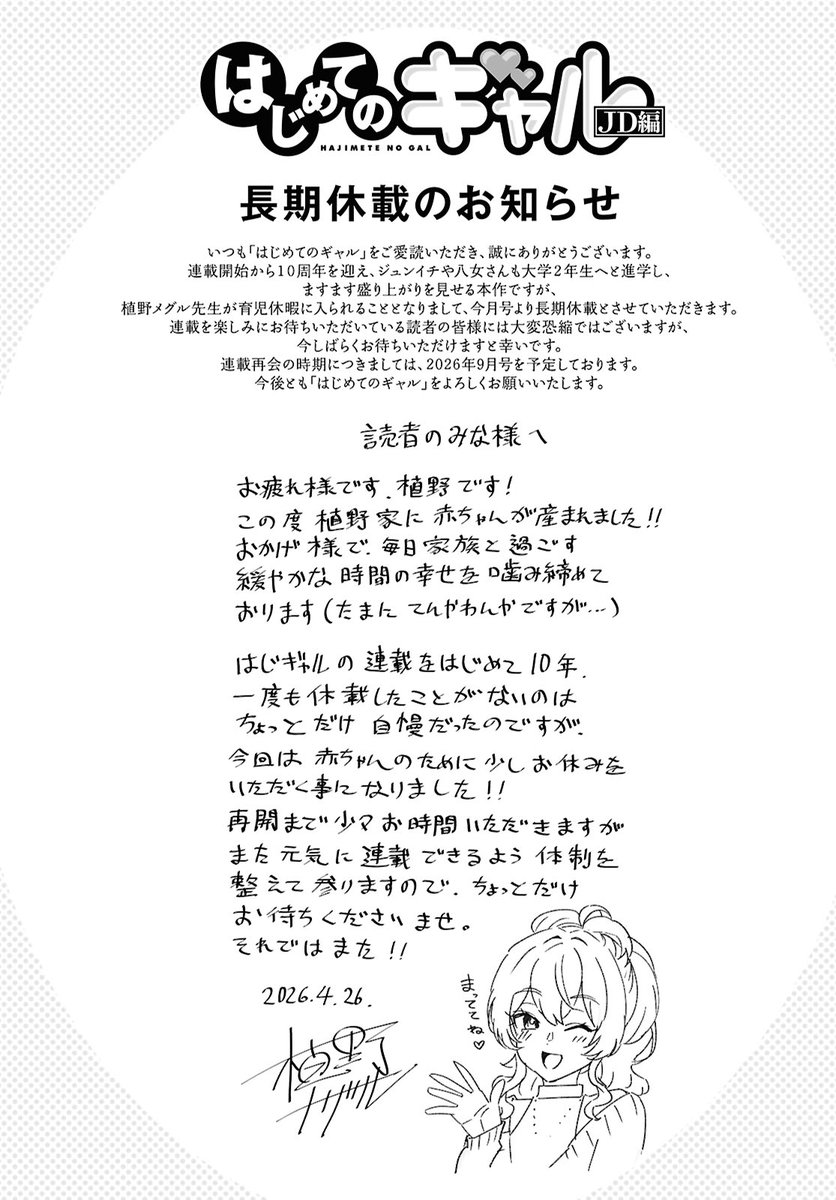 [閒聊] 辣妹與我的第一次 育兒假長期休刊至 7 月