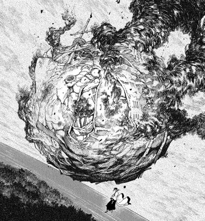 他用妖術將被破壞的甲鐵艦壓縮成鐵球