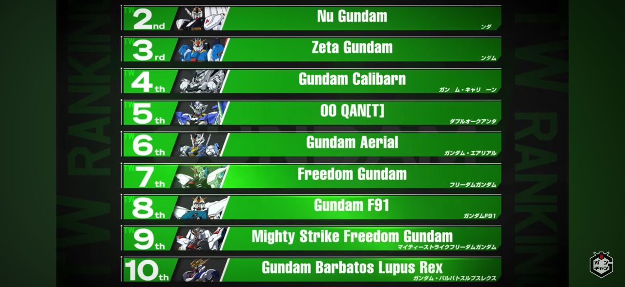 2025台灣區最受歡迎的是天使鋼彈(W或EW)