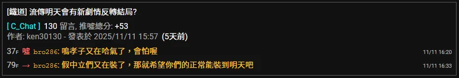 ※ 文章網址: https://www.ptt.cc/bbs/C_ChatBM/M.1763350025.A.5C7.html