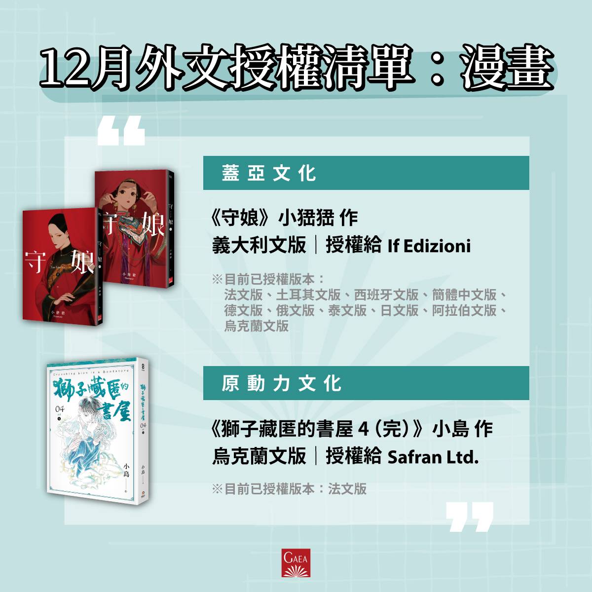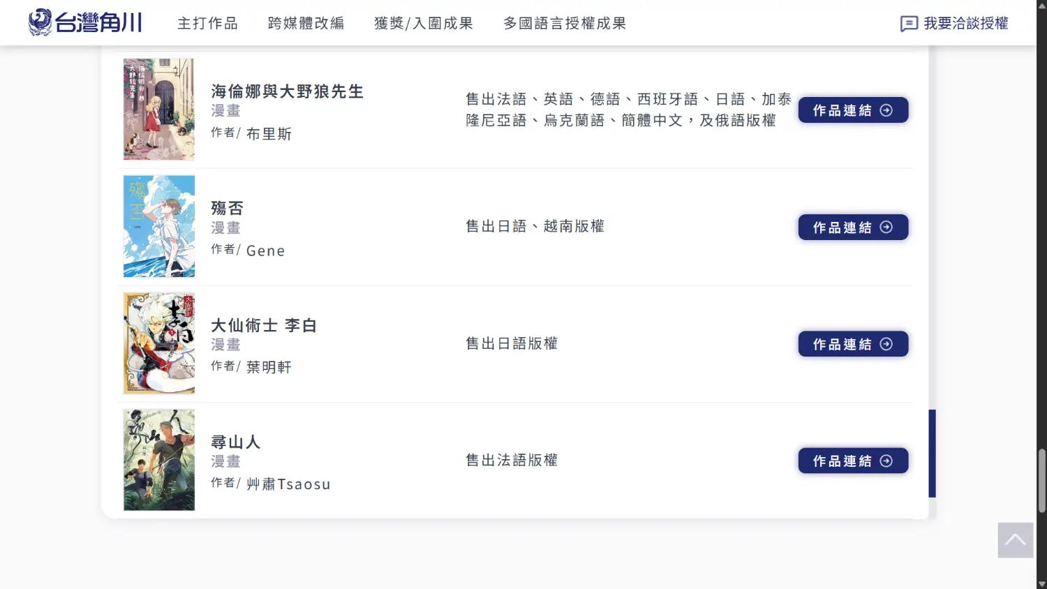 海外授權我隨意抓蓋亞的臺漫作品(因為年度陸續新增,有重覆提及的作品)