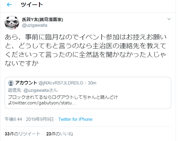 結果被人以漫畫形式爆料說在某場Ryona系活動上對孕婦很不尊重