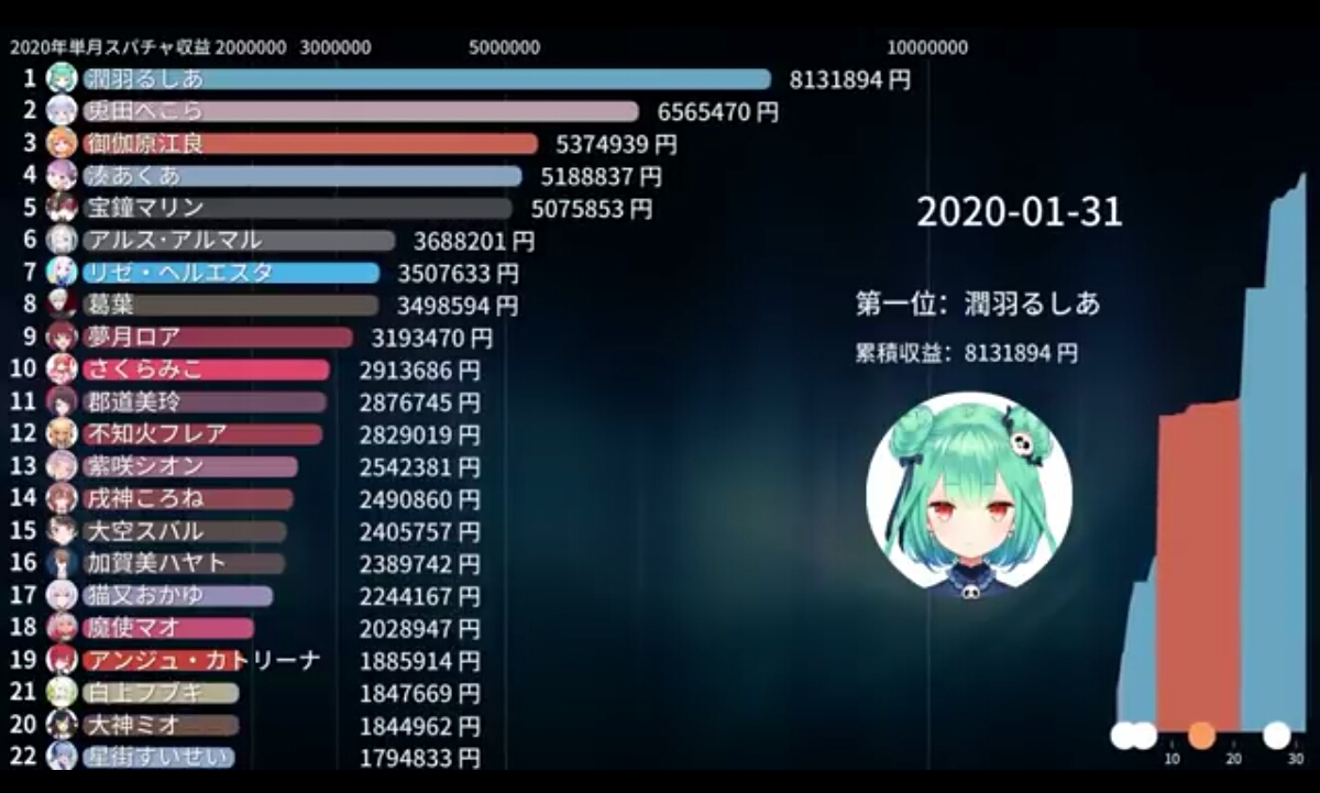 10位大空スバル(ホロライブ所属Vtuber) 265万