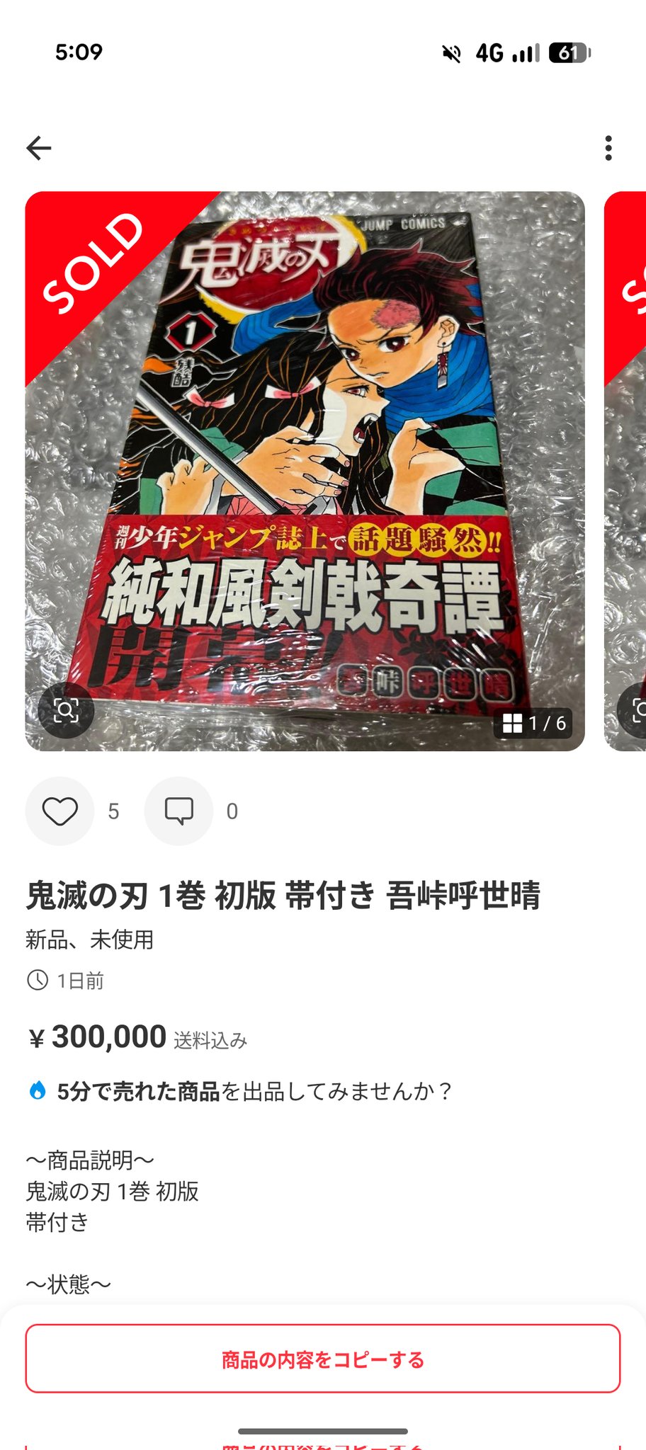 品相差一點的海賊王第一集也要七十萬日幣