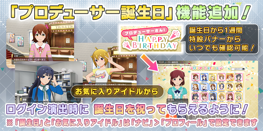 在登入時將會有你所設定的お気に入り偶像來幫你慶祝