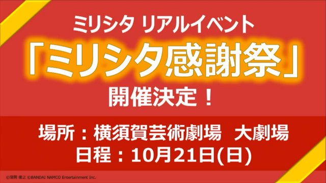 10/21將於橫須賀藝術劇場的大劇場舉行ミリシタ感謝祭
