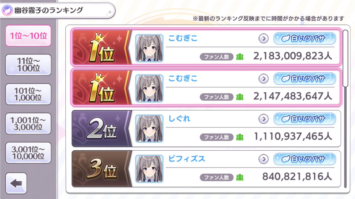 有霧子P打這次SC的P杯活動 農粉絲農到21億多