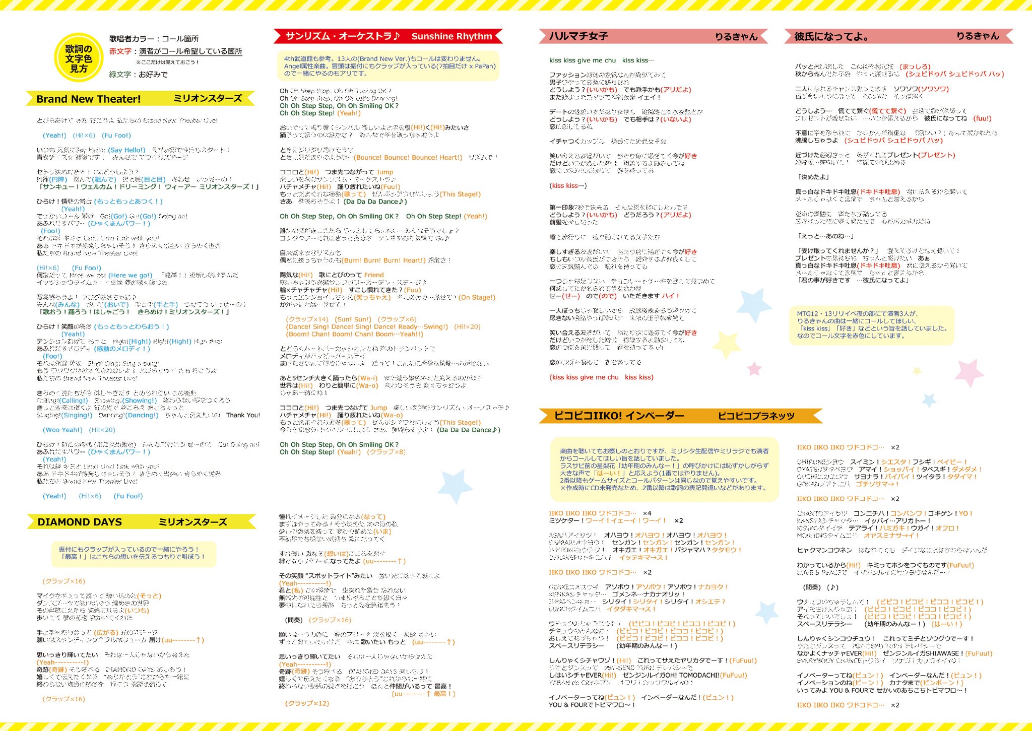 在發售活動的時候聲優有表示希望兩首曲子大家都可以一起call