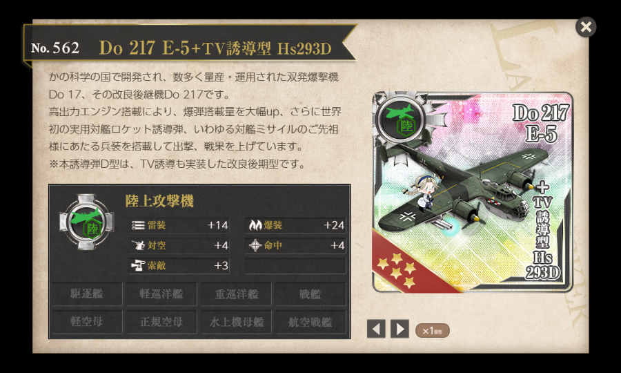 ●[新型対艦誘導弾運用機] Do 217 E-5+TV誘導型 Hs293D ★+1 new!