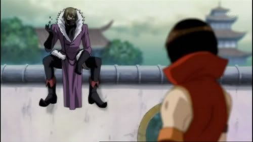 (劇情解說:紫衣神秘人物趙雲坐在高處,向紅衣路人男主角陸遜扔小石頭)