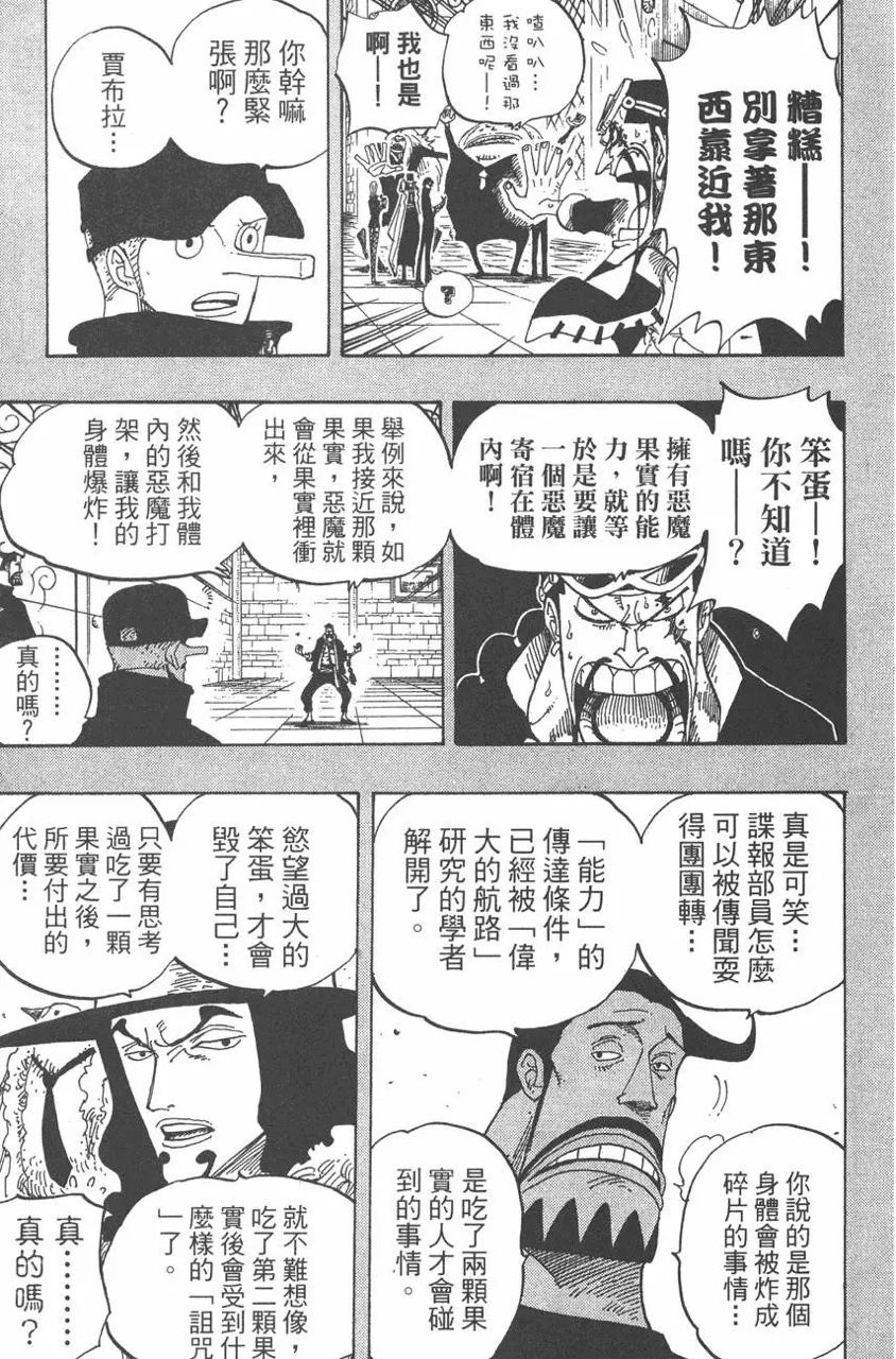 : 本話中路飛正在持續盡可能多的進食,他說自己感受到了一位前所未有的強敵,因此必須