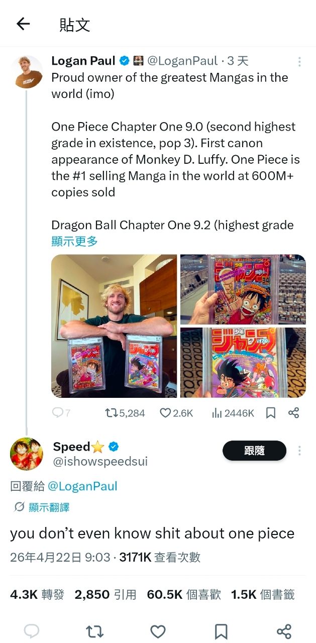 Logan Paul 秀出了他蒐藏的 OP 第一話 JUMP