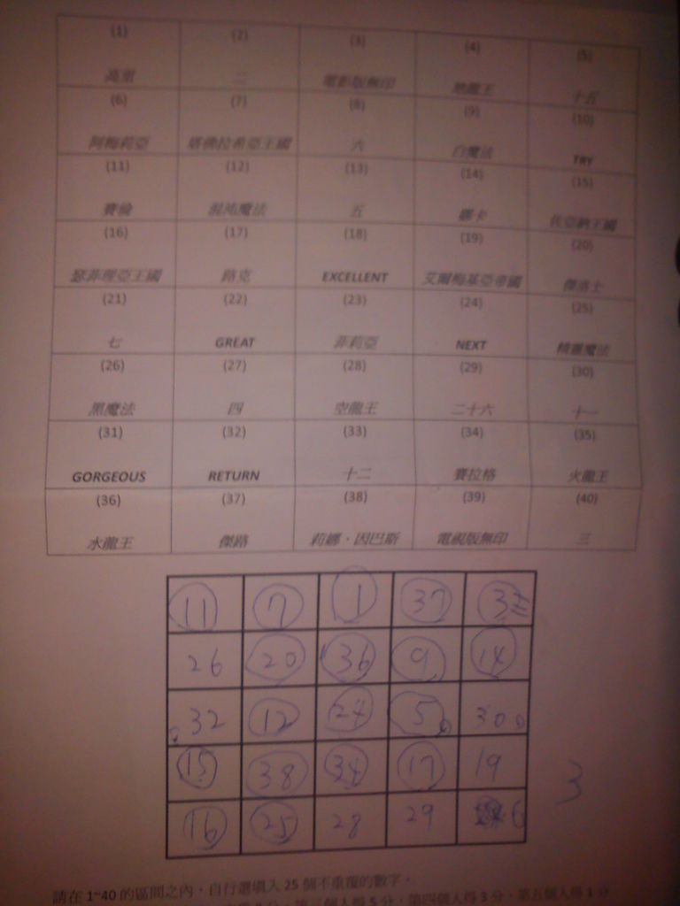問答賓果是在一張有40個問答答案的編號表格中,挑選25個編號填入5*5的方格中,主辦人呆呆會開始問題目,知道答案後找出對應的編號,如果一開始有選中這個編號便可以畫上記號,最先連成一條線的人算贏。於是……連線比想像中的還難。知道答案的沒選編號,選上編號的好像又不太確定答案……讓我們來看這些包山包海的達人等級問題吧!