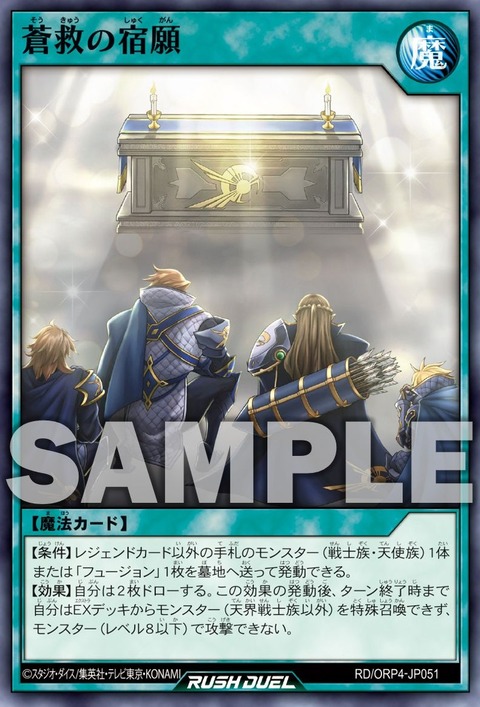 效果:我方抽2張。此效果發動後,這回合我方從EX牌組不能特殊召喚怪獸(天界戰士族以外