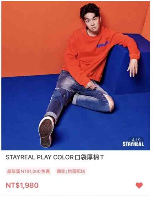 1.STAYREAL PLAY COLOR口袋厚棉T 橘 $1980