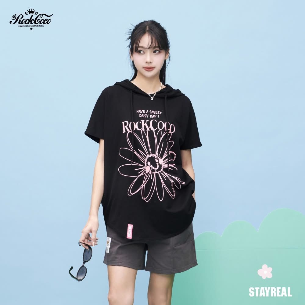 3. 微笑小花經典寬版T 黑$1080